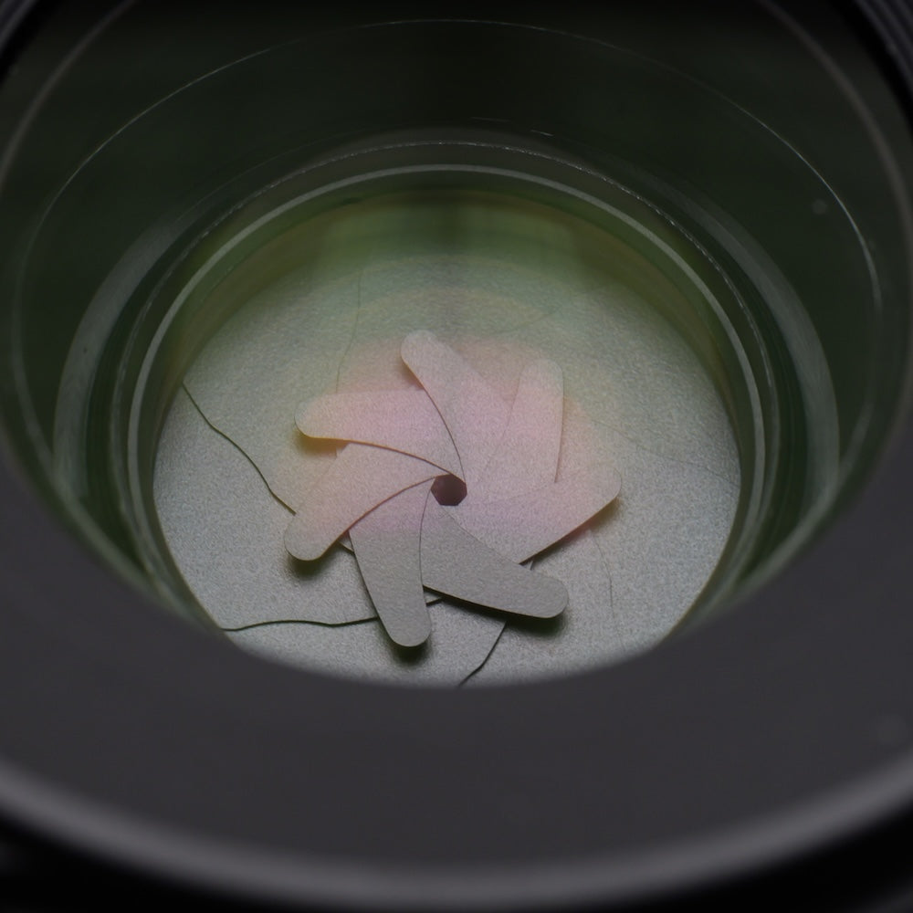 強い光をかざすとチリの混入や薄いクモリが見受けられますが、撮影画像への影響はございません。